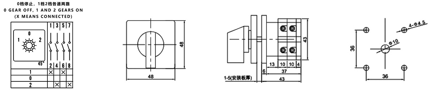 Дом / Продукт / Универсальный переключатель / Закрытый переключатель / ZHUCO SZW26-20/D202.2TWBF 1-0-2 трехпозиционный 2-секционный переключатель