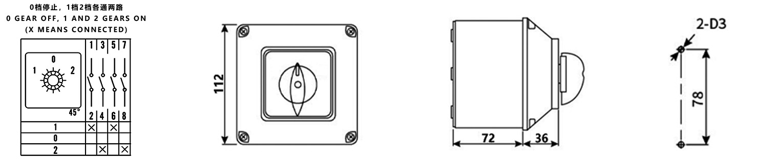 Переключение мощного оборудования на открытом воздухе/в суровых условиях: служит в качестве переключателя основного/резервного питания или переключателя выбора режима работы для наружных насосных станций, больших вентиляторов, кондиционеров, электрических ворот и систем распределения наружного освещения. Защита IP65 обеспечивает надежную работу в условиях дождя и пыли.