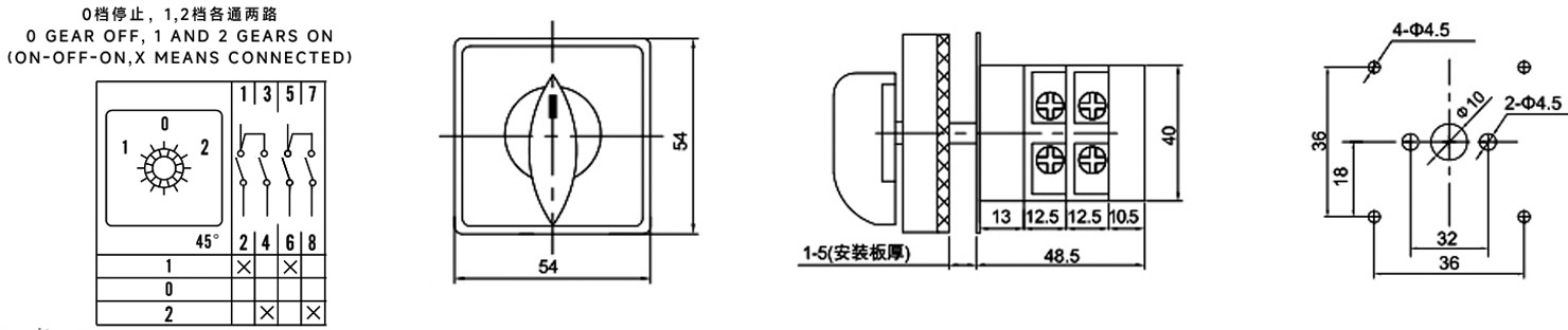 Дом / Продукт / Универсальный переключатель / Многофункциональный переключатель питания SZL9 / ZHUCO SZL9-20/D0414.2 20A/2P Двухполюсный трехпозиционный 102-позиционный переключатель