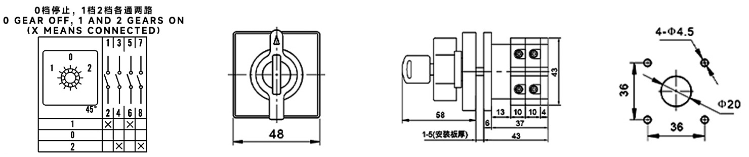 Дом / Продукт / Универсальный переключатель / Многофункциональный переключатель SZW26 / SZW26-20 D202.2Y-D11 Трехпозиционный однополюсный запираемый переключатель