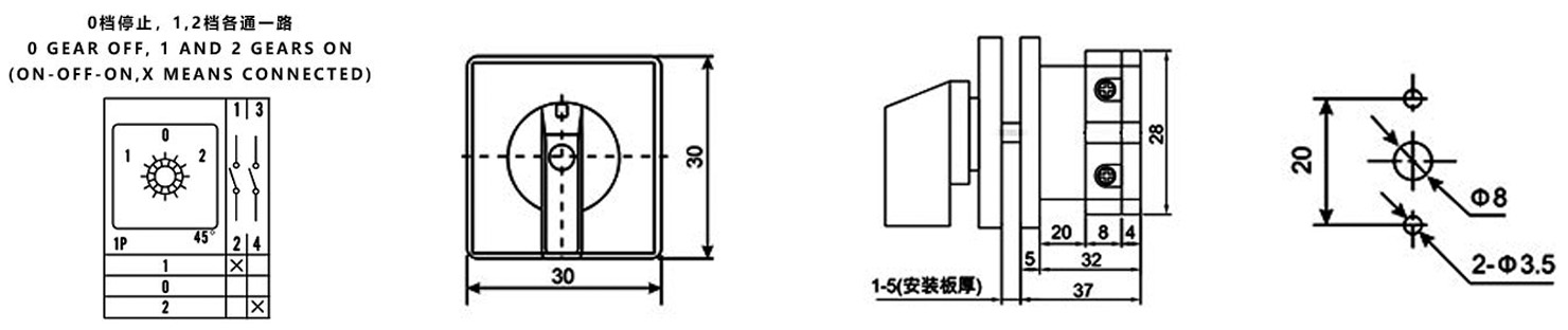 Дом / Продукт / Универсальный переключатель / Многофункциональный переключатель SZW26 / ZHUCO SZW26-10/D101.1 1-0-2 Трехпозиционный односекционный переключатель