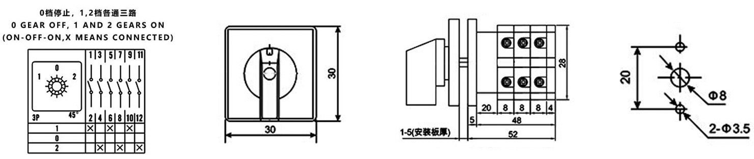 Дом / Продукт / Универсальный переключатель / Многофункциональный переключатель SZW26 / ZHUCO SZW26-10/D303.3 1-0-2 Трехпозиционный трехсекционный переключатель
