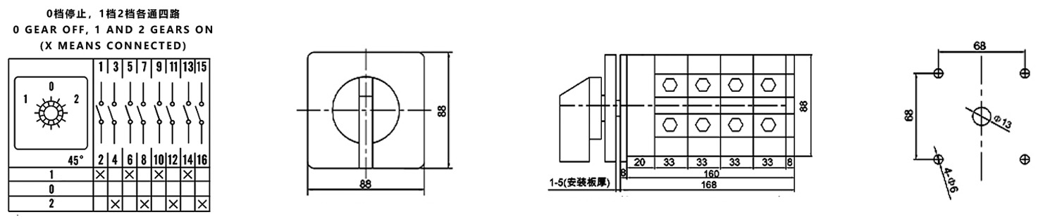 Дом / Продукт / Универсальный переключатель / Многофункциональный переключатель SZW26 / ZHUCO SZW26-160/D404.4 1-0-2 Трехпозиционный четырехсекционный сильноточный переключатель