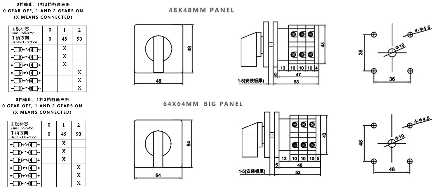 Дом / Продукт / Универсальный переключатель / Многофункциональный переключатель SZW26 / ZHUCO SZW26-20 0-2.3 0-1-2 Трехпозиционный трехсекционный переключатель