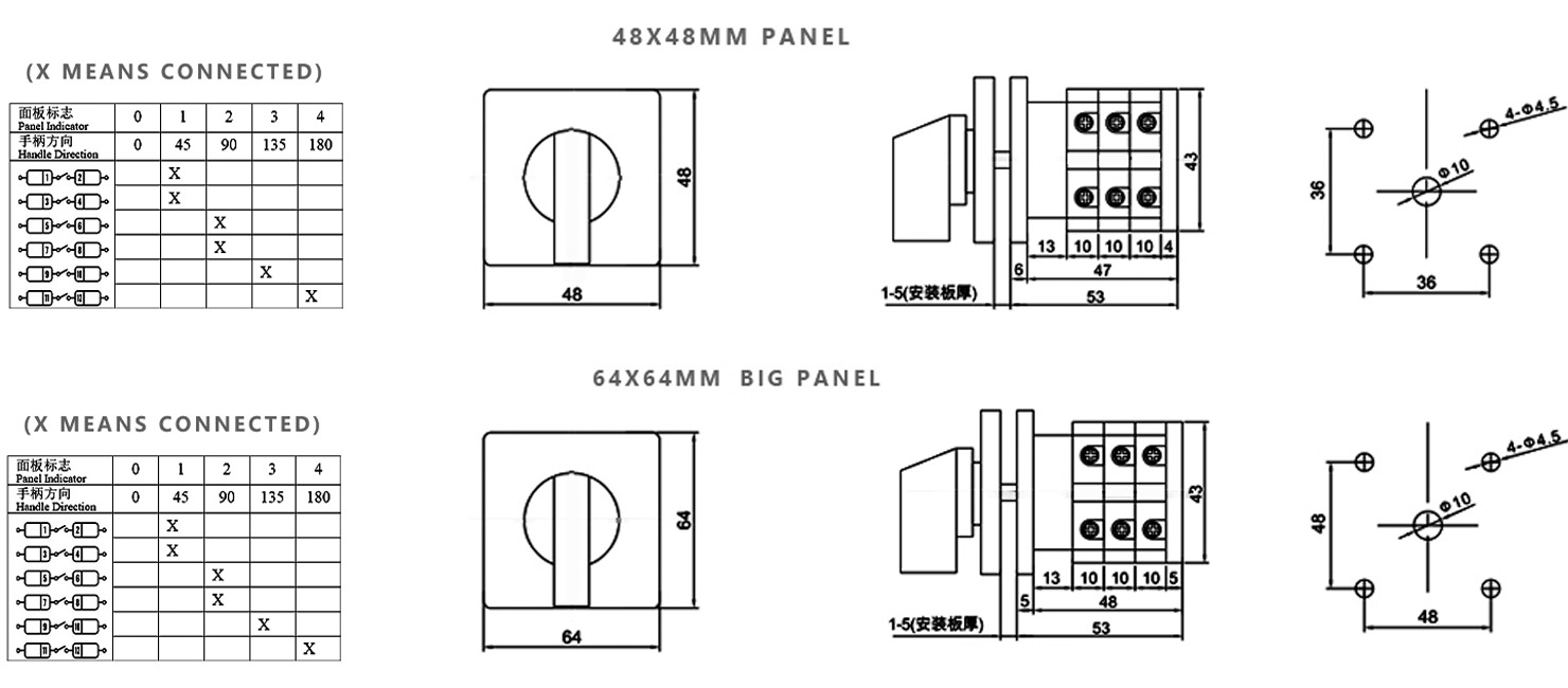 Дом / Продукт / Универсальный переключатель / Многофункциональный переключатель SZW26 / ZHUCO SZW26-20/0-4.3 0-1-2-3-4 Пятипозиционный трехсекционный переключатель