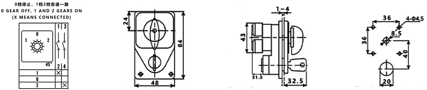 Дом / Продукт / Универсальный переключатель / Многофункциональный переключатель SZW26 / ZHUCO SZW26-20/D101.1YS Трехпозиционный односекционный переключатель с электронным замком