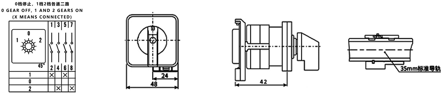 Дом / Продукт / Универсальный переключатель / Многофункциональный переключатель SZW26 / ZHUCO SZW26-20 D202.2-B11R Трехпозиционный двухсекционный переключатель крепления на DIN-рейку