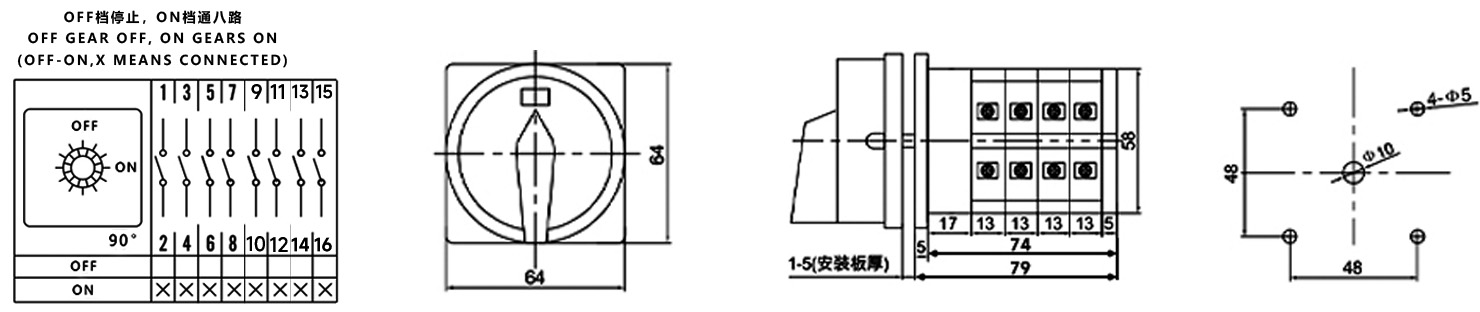 Дом / Продукт / Универсальный переключатель / Многофункциональный переключатель SZW26 / ZHUCO SZW26-324GS OFF-ON Двухпозиционный четырехсекционный выключатель питания