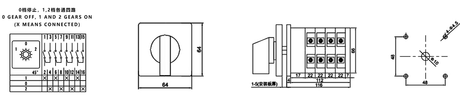 Дом / Продукт / Универсальный переключатель / Многофункциональный переключатель SZW26 / ZHUCO SZW26-63/D404.4 1-0-2 Трехпозиционный четырехполюсный переключатель