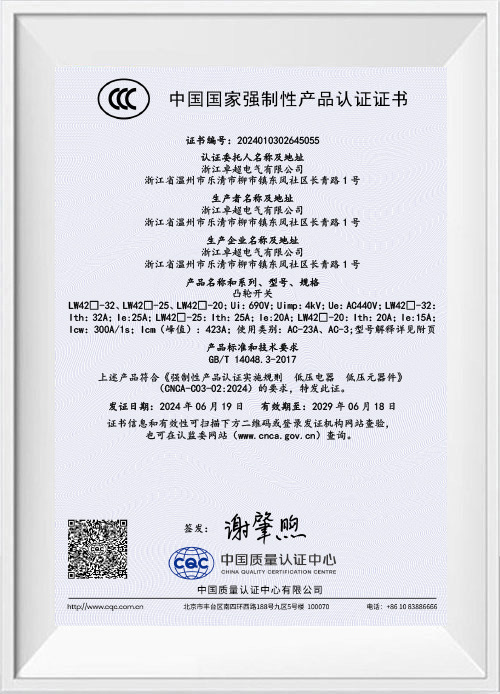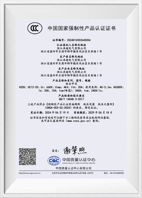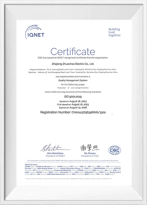 Компания Zhejiang Zhuochao Electric Co., Ltd., основанная в 2012 году, специализируется на производстве и продаже универсальных переключателей, комбинированных переключателей, выключателей питания, выключателей нагрузки и выключателей сварочных аппаратов. В частности, переключатели компании могут похвастаться ведущими техническими стандартами в отрасли. Наша продукция получила сертификацию системы менеджмента качества ISO9001:2008, национальную сертификацию 3C, сертификацию TUV, сертификацию CE и экологическую сертификацию ROHS и производится в строгом соответствии с национальными стандартами. Они имеют сильное присутствие на рынках Китая и экспортируются во многие страны и регионы Европы, Америки и Юго-Восточной Азии. Мы также установили партнерские отношения с рядом всемирно известных брендов.